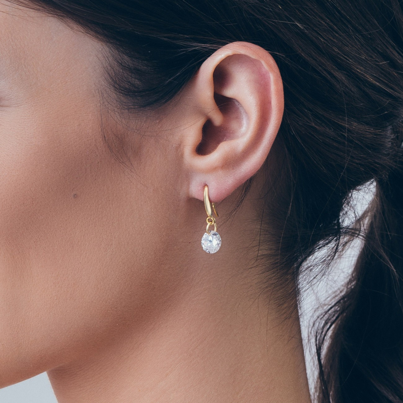 Sterling silver earrings with rivoli crystals 10 mm gold plated