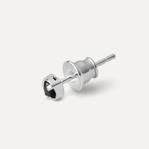 Men's earring with 6 mm black diamond, silver 925 platinum plated