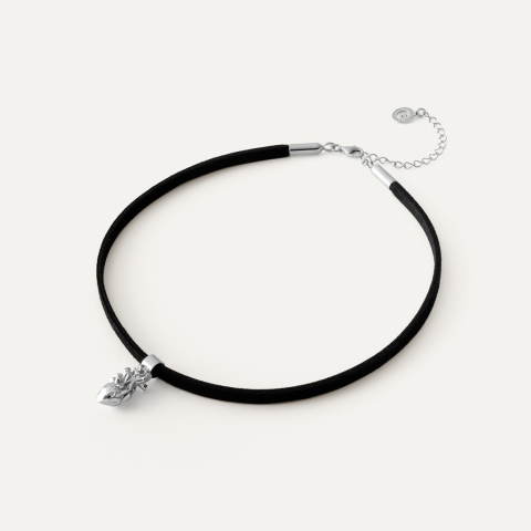Choker with Alcantara and Filigree Heart, Sterling Silver 925 Plated with Platinum