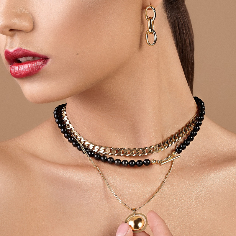 Krótki naszyjnik jest piękną oprawą dekoltów i odsłoniętych ramion. Delikatny choker noś do jeansów i T-shirtu i do szykownych wieczorowych kreacji. Masz do wyboru dwa topowe, subtelne wzory: choker ankier z kulkami albo choker pleciony z dwóch łańcuszków.
