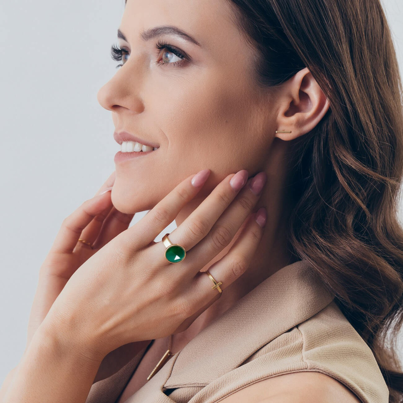 Srebrny pierścionek z kamieniem Rose Cut - jadeit zielony , srebro 925 w złotym pokryciu