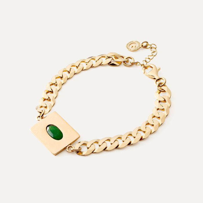 Srebrny pierścionek z owalnym kamieniem - jadeit zielony, srebro 925 w złotym pokryciu